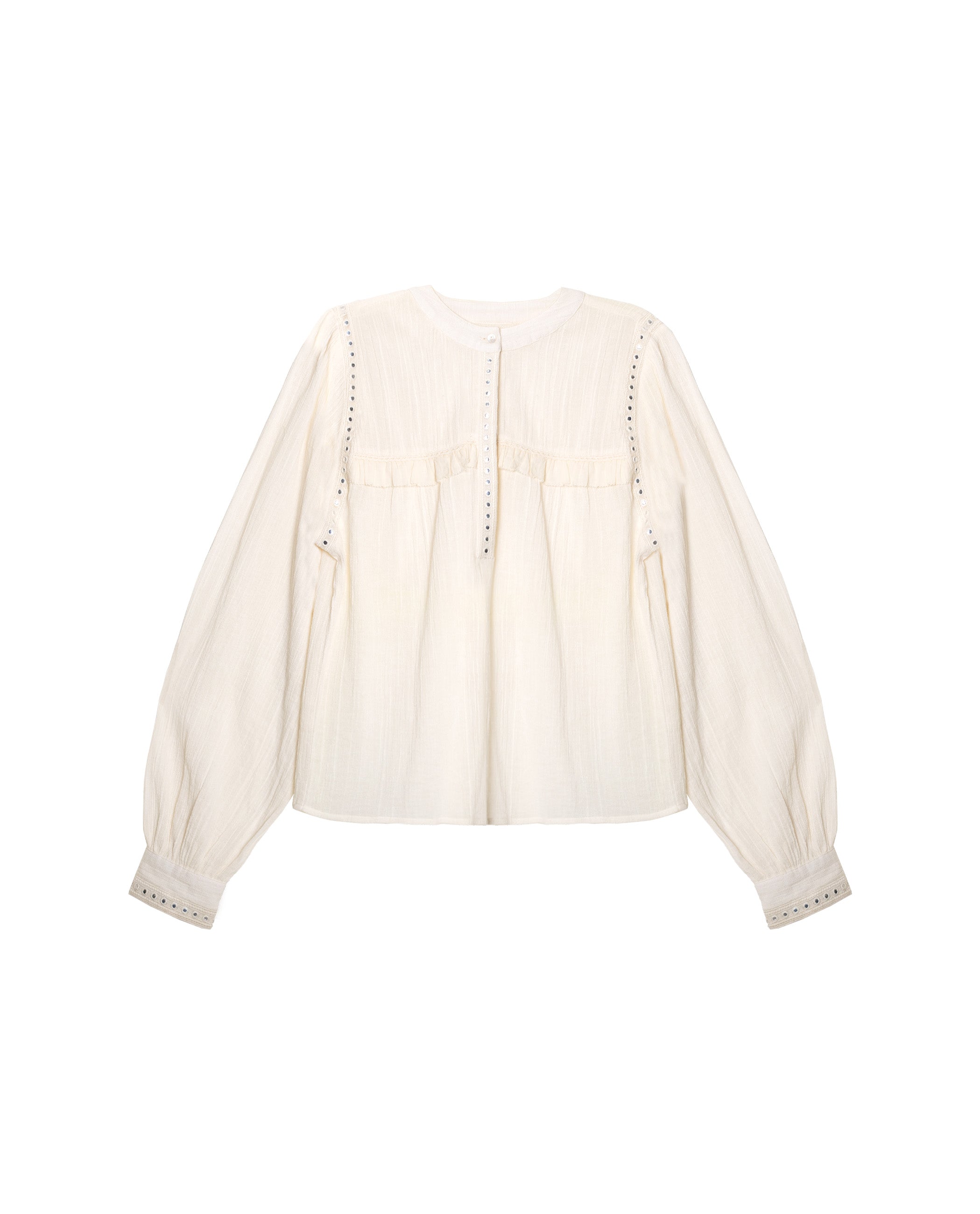 - Miroirs arrondis sur les épaules et poignets froncés.