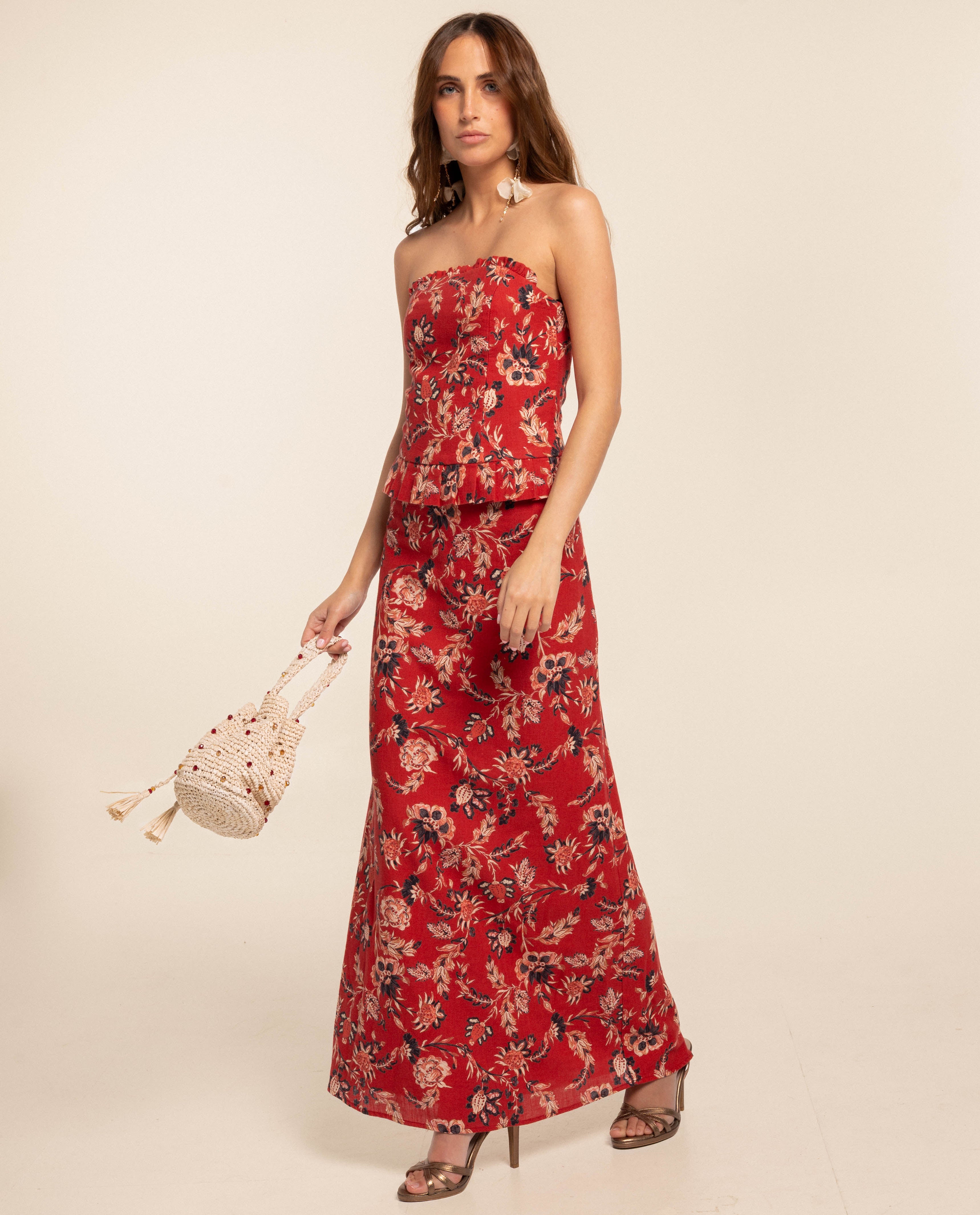 - Dos réglable avec rubans.[tailles]Le modèle mesure 1,72m. Elle porte un pantalon taille 36 et un top taille XS. Elle porte la taille XS dans cette robe.