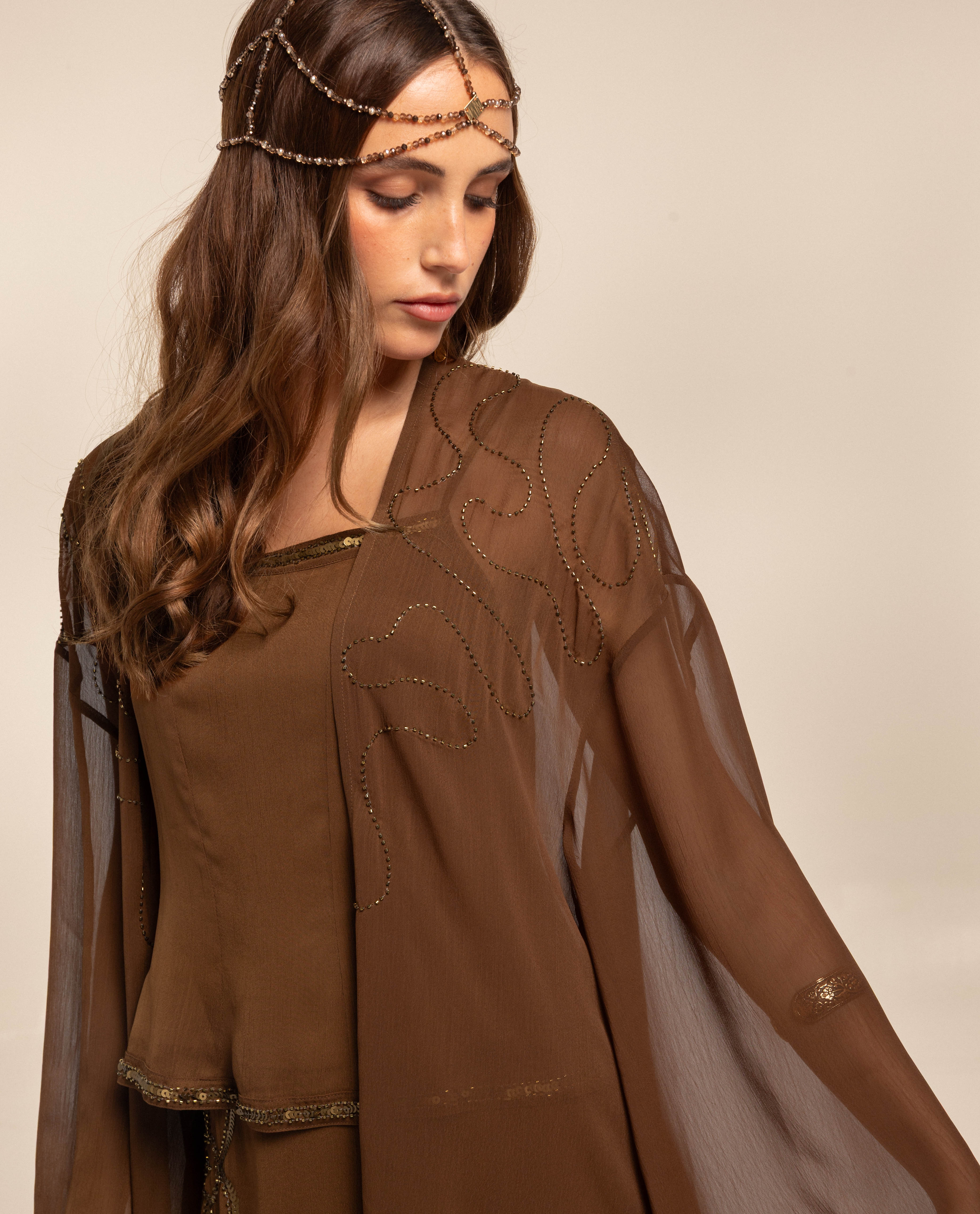 CAFTÁN GASA BORDADO · MARRÓN