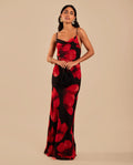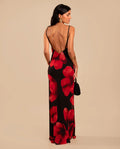 - Estampado floral sobre fondo negro.