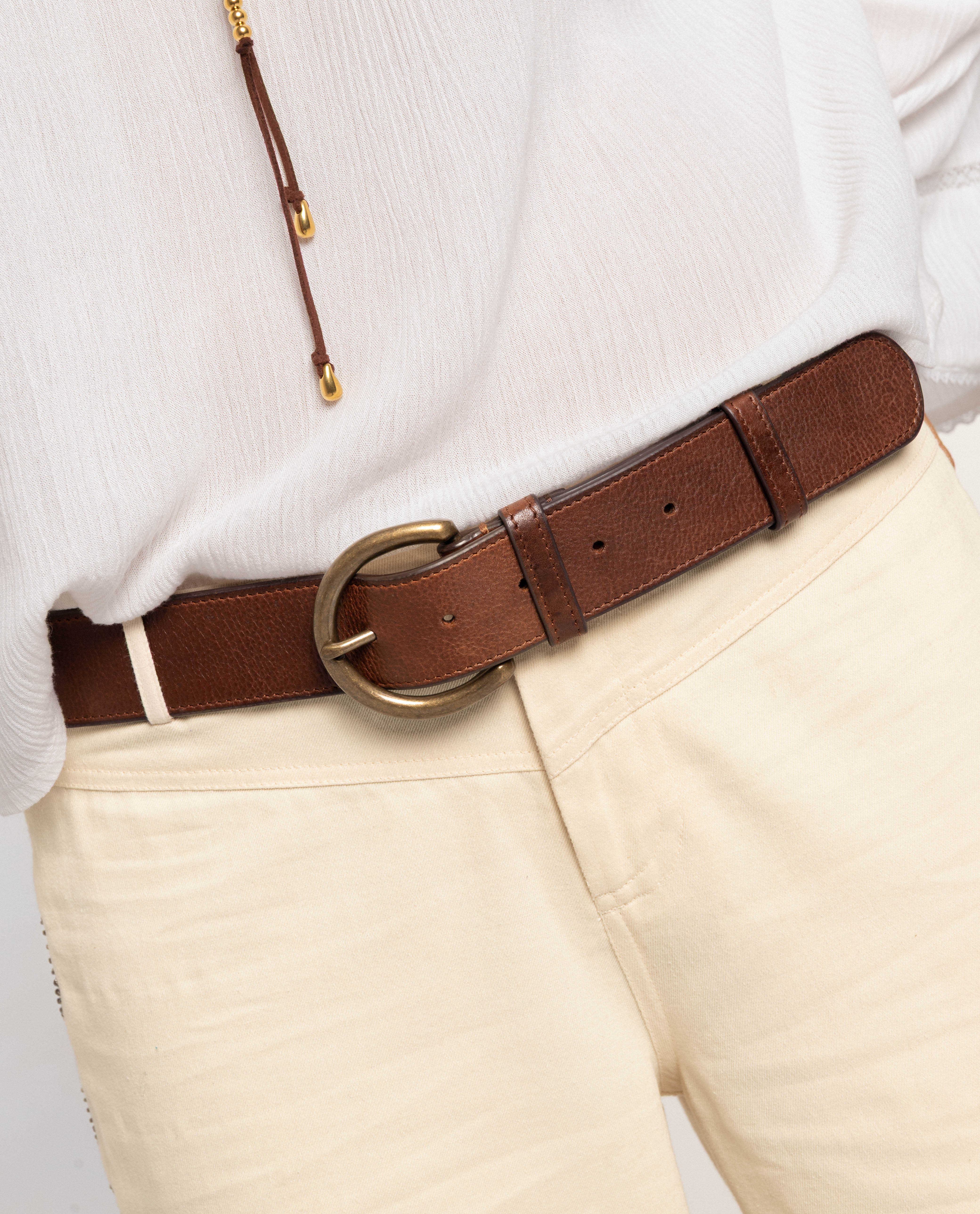 - Cinto de corrente com peças douradas lisas.